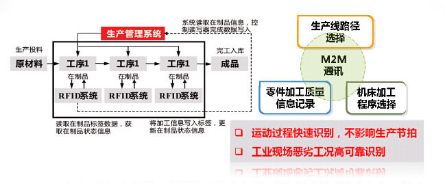 解決方案:在復雜零件和托盤上安裝RFID標簽,有效識別身份在加工設備和線體上安裝工業讀寫器,實現產品和設備的智能通訊,為MES等信息系統有效提供數據采集和處理。