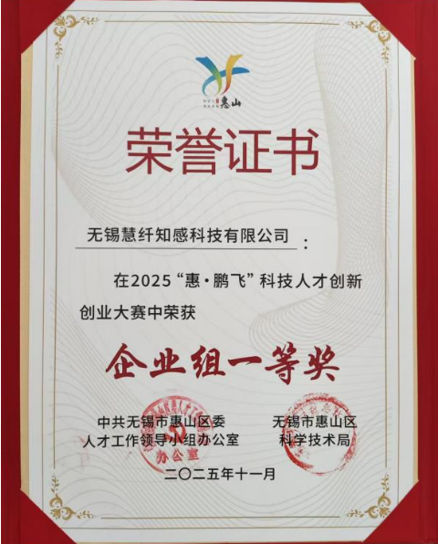 2025年11月20日,2025“惠·鵬飛”科技人才創(chuàng)新創(chuàng)業(yè)大賽總決賽暨頒獎(jiǎng)儀式隆重舉行。經(jīng)過(guò)與眾多科技企業(yè)的激烈角逐,無(wú)錫慧纖知感科技有限公司憑借卓越的創(chuàng)新實(shí)力與廣闊的商業(yè)前景脫穎而出,一舉奪得企業(yè)組一等獎(jiǎng)。